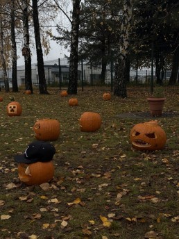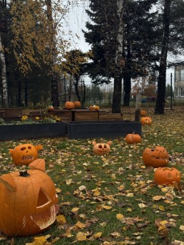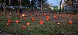 Mokyklos kiemas šią savaitę suspindo šimtais švieselių, šypsenų  ir išradingai išskaptuotų moliūgų