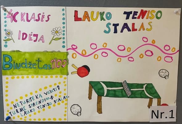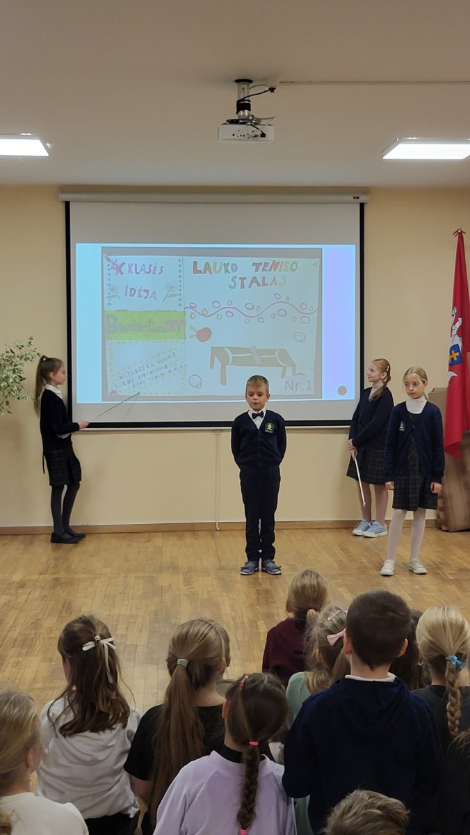 Šiais metais mūsų 3–4 klasių mokiniai dar kartą įrodė, kad yra kūrybingi, atsakingi ir pasirengę prisidėti prie savo mokyklos tobulinimo. Dalyvaudami Dalyvaujamojo biudžeto projekte, vaikai aktyviai teikė pasiūlymus, kaip pagerinti mokymosi ir laisvalaikio aplinką. Idėjų buvo pačių įvairiausių – nuo 3D spausdintuvo, sportinio inventoriaus, kondicionieriaus aktų salei, didžiųjų šachmatų ir stalų tenisui iki poilsio zonos įrengimo kupole.