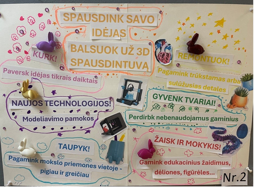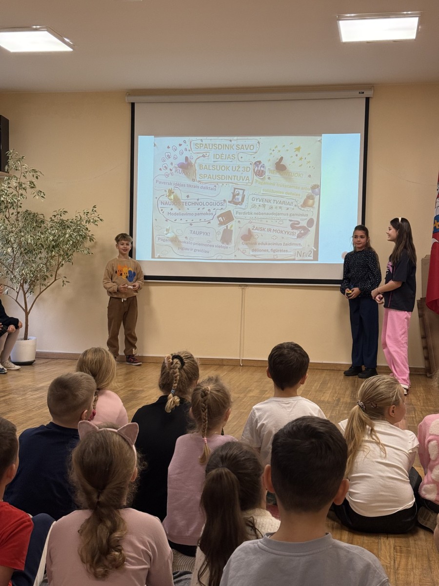 Jų pasiūlymas – mokyklai įsigyti 3D spausdintuvą – surinko daugiausia balsų. Tai puiki iniciatyva, atversianti dar daugiau galimybių kūrybai, technologijų pažinimui ir praktiniams projektams.