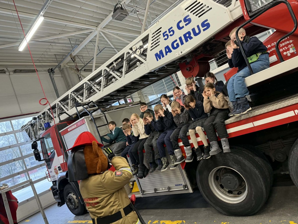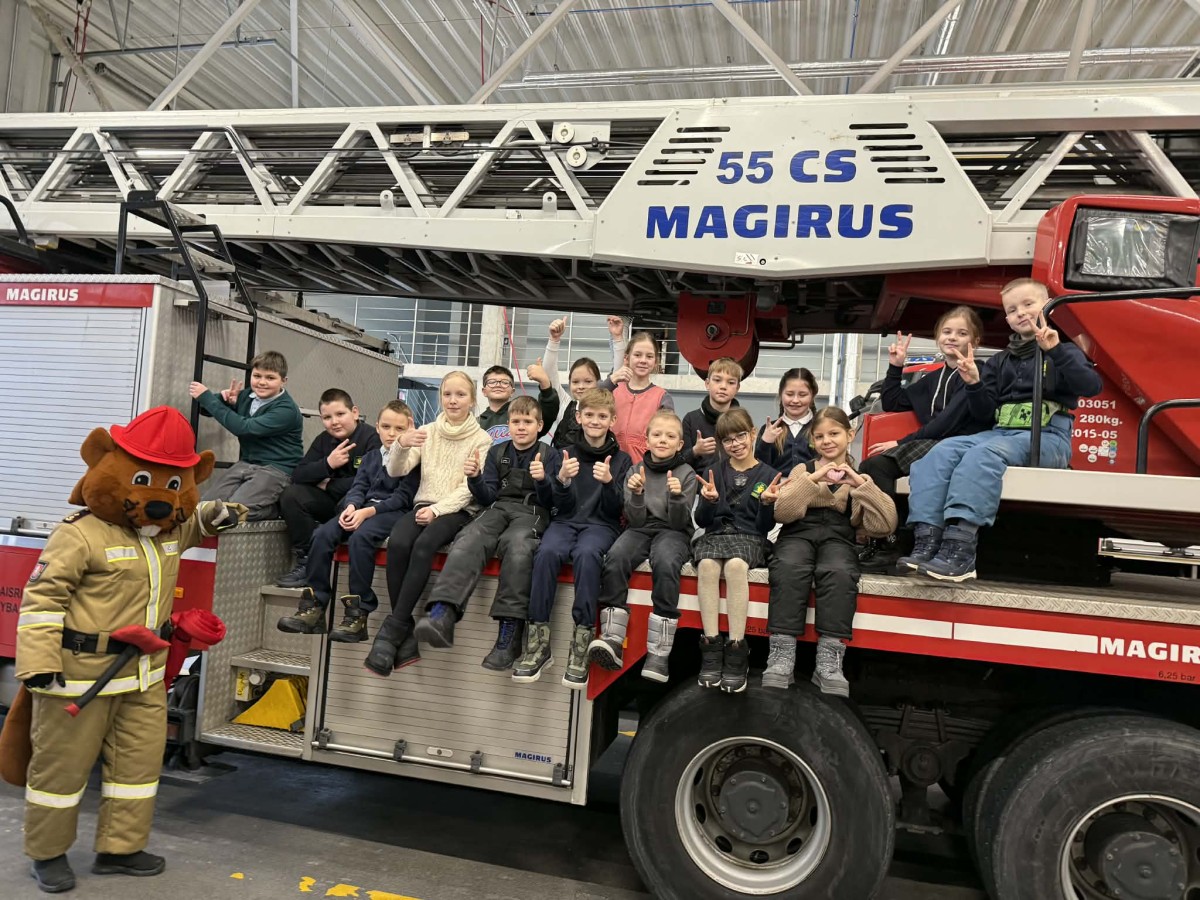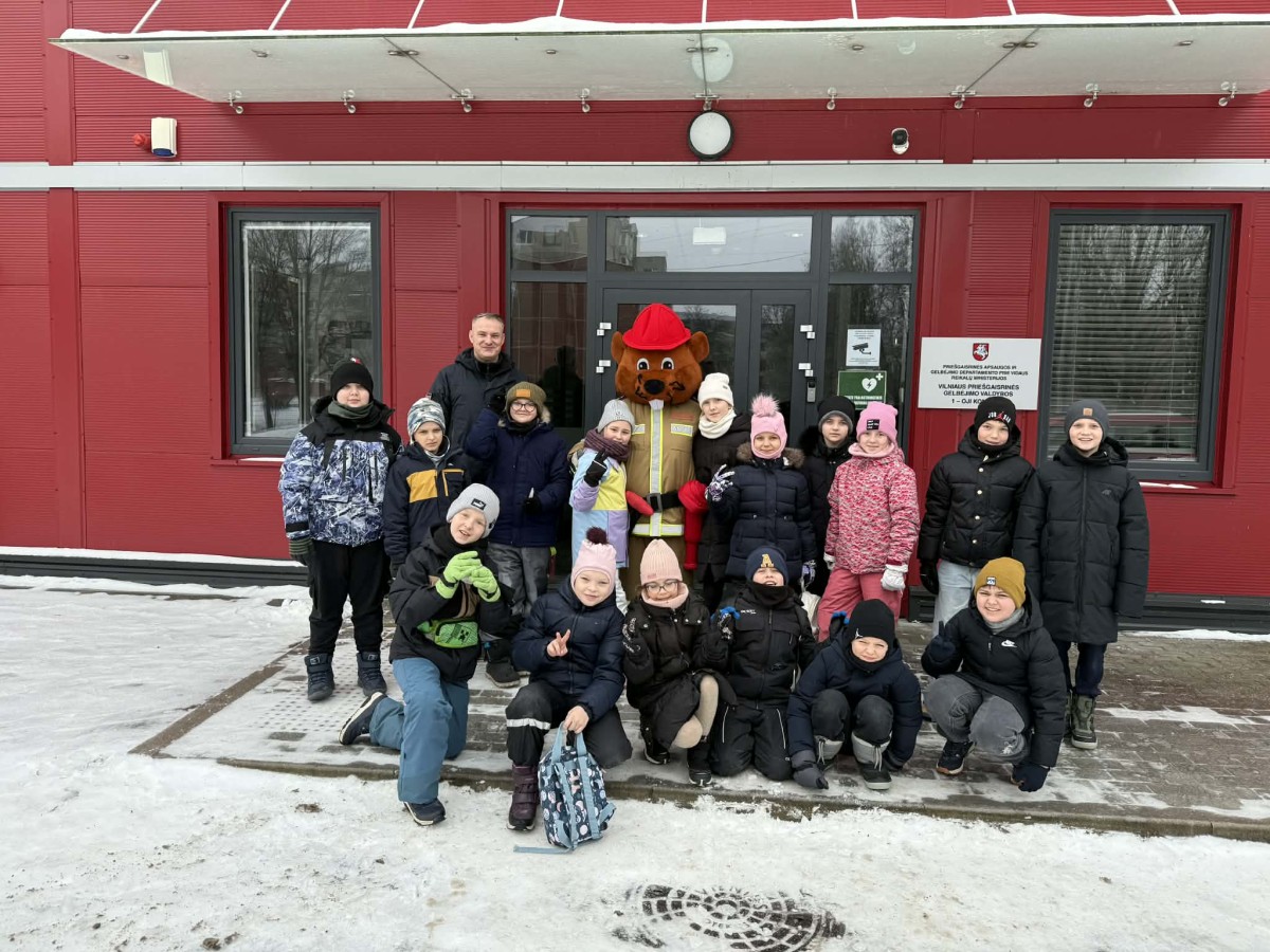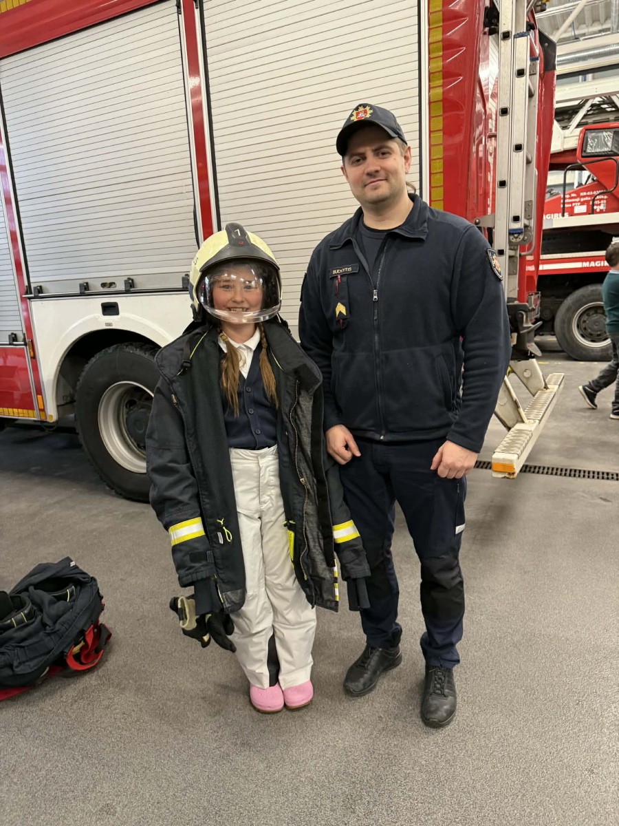Ugniagesiai papasakojo apie saugų elgesį kilus gaisrui 🔥, pagalbos iškvietimą 📞 bei savo atsakingas pareigas. Mokiniai turėjo galimybę ne tik įlipti į gaisrinį automobilį 🚒, apžiūrėti įrangą, bet ir išbandyti ugniagesių nusileidimo stulpą 🧗♂️, kuris sukėlė labai daug emocijų ir džiaugsmo 😲🤩.