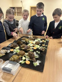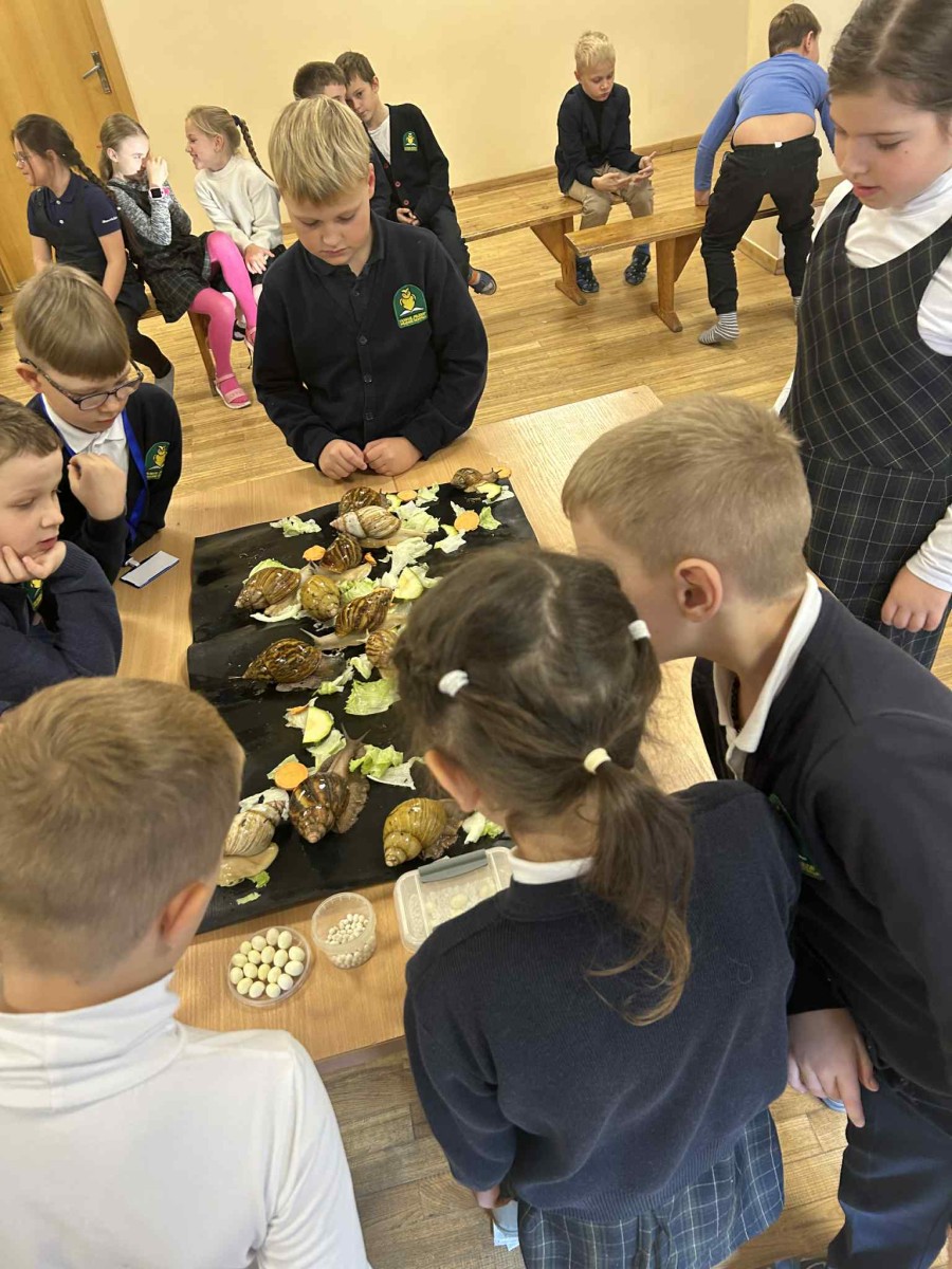 1a, 2b, 4c klasės šiandien dalyvavo edukacijoje apie Afrikines sraiges. Edukacijos metu edukatorius pasakojo apie jų gyvenimo ciklą, maitinimosi, dauginimosi ypatumus bei kitas savybes. Vaikai turėjo galimybę tiesiogiai susipažinti su šiais gyvūnais, juos pamatyti iš labai arti, paliesti, paglostyti. Ši edukacinė veikla suteikė daug džiaugsmo ir teigiamų emocijų vaikams, taip pat paskatino domėtis gamtos pasauliu.