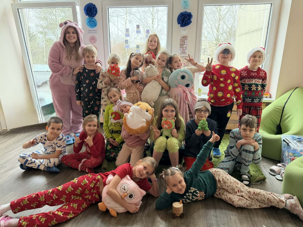 Mokykla prisipildė minkštų pižamų, šlepečių, pledų ir geros nuotaikos. Vaikai atėjo pasipuošę savo mylimiausiomis pižamomis, pasiruošę jaukiai, bet kartu ir linksmai dienai 🎈