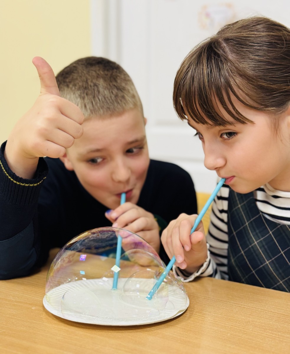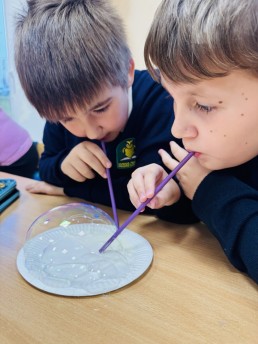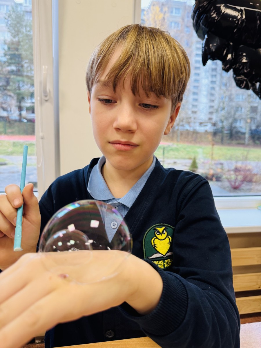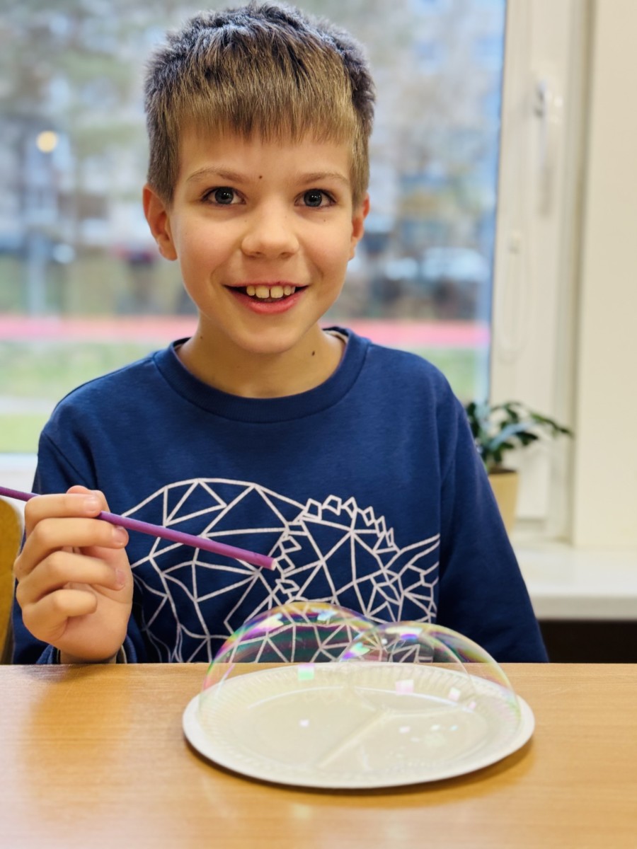 Pagal receptą galima ne tik pyragą kepti, bet ir gaminti muilo burbulus. 3b klasei tai puikiai pavyko! Muilo burbulai tikrai turi magišką galią. Vaikai negalėjo sustoti pūsti.