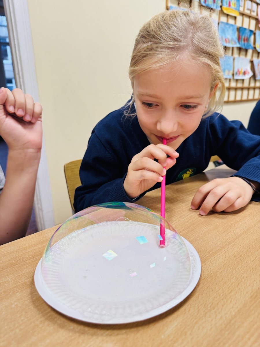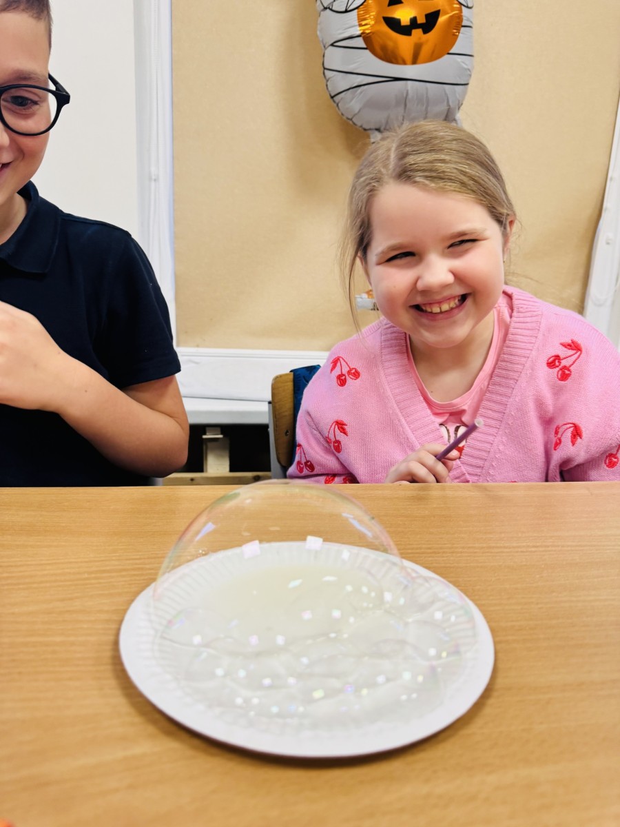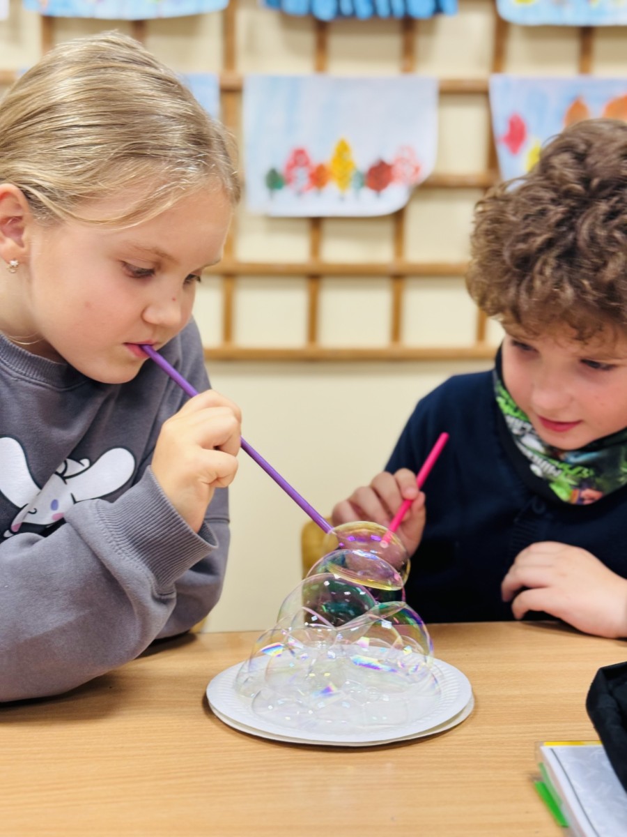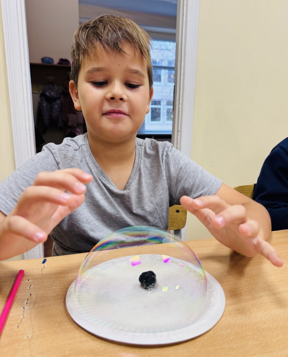 Pagal receptą galima ne tik pyragą kepti, bet ir gaminti muilo burbulus. 3b klasei tai puikiai pavyko! Muilo burbulai tikrai turi magišką galią. Vaikai negalėjo sustoti pūsti.