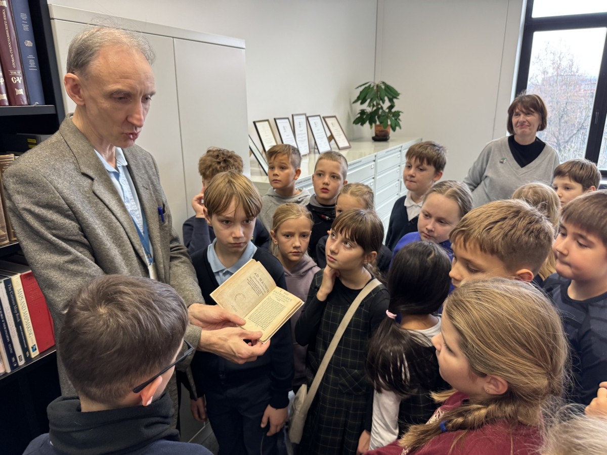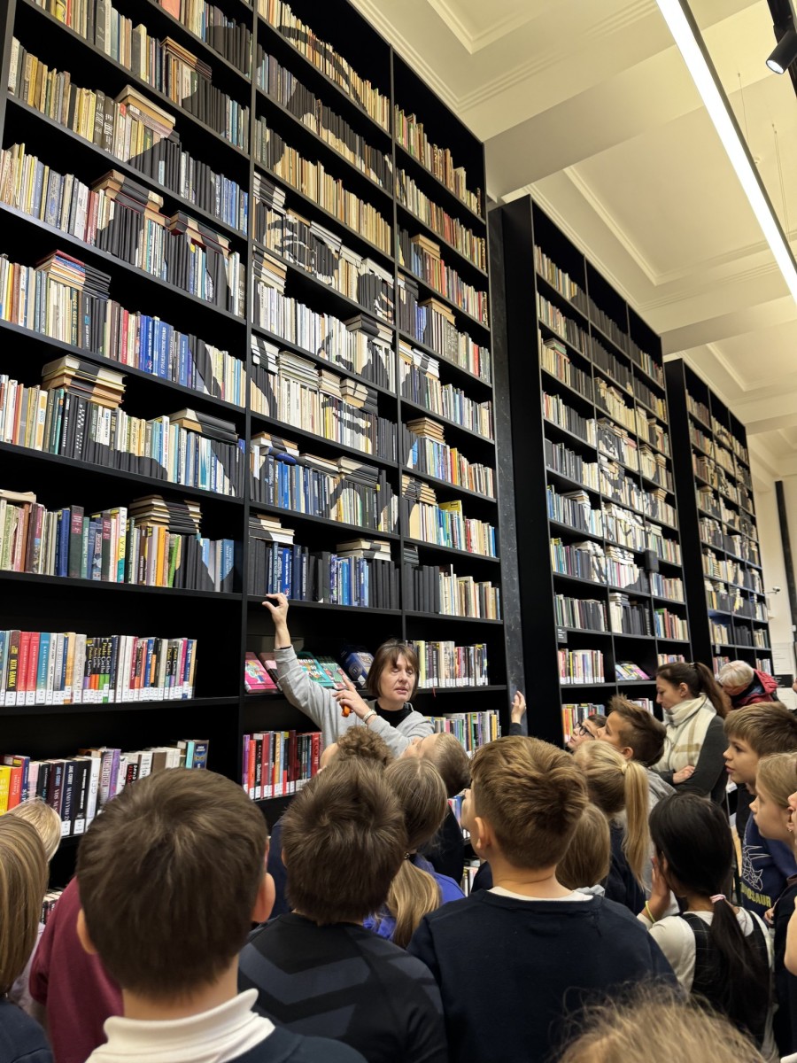 Lapkričio 20 d. 3B klasės mokiniai su mokytoja Erika lankėsi Martyno Mažvydo bibliotekoje. Išvykos metu mokiniai susipažino su didžiausios šalies bibliotekos erdvėmis, jos istorija, veikla. Gidė papasakojo, kaip kaupiamos ir saugomos knygos. Vaikai pamatė tiksliai atkurtą „Katekizmo”, pirmosios lietuviškos knygos, originalo kopiją bei labai retų leidinių kolekciją.