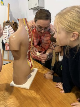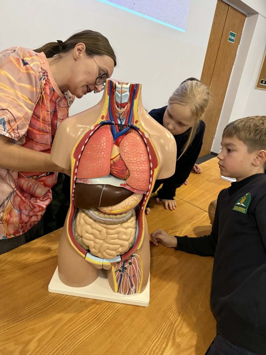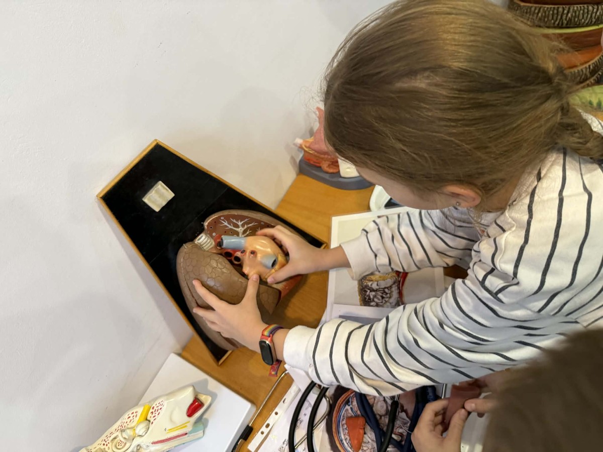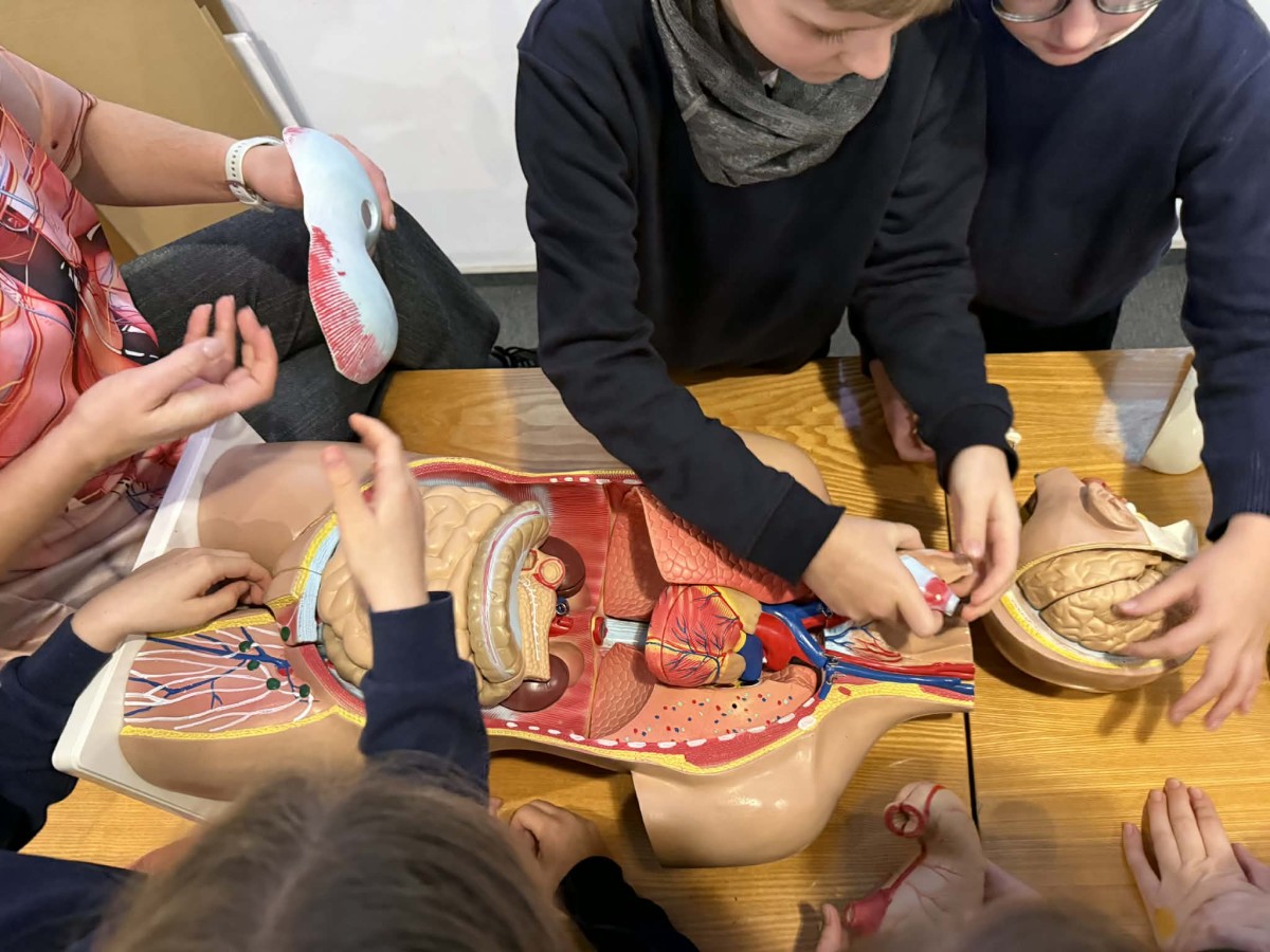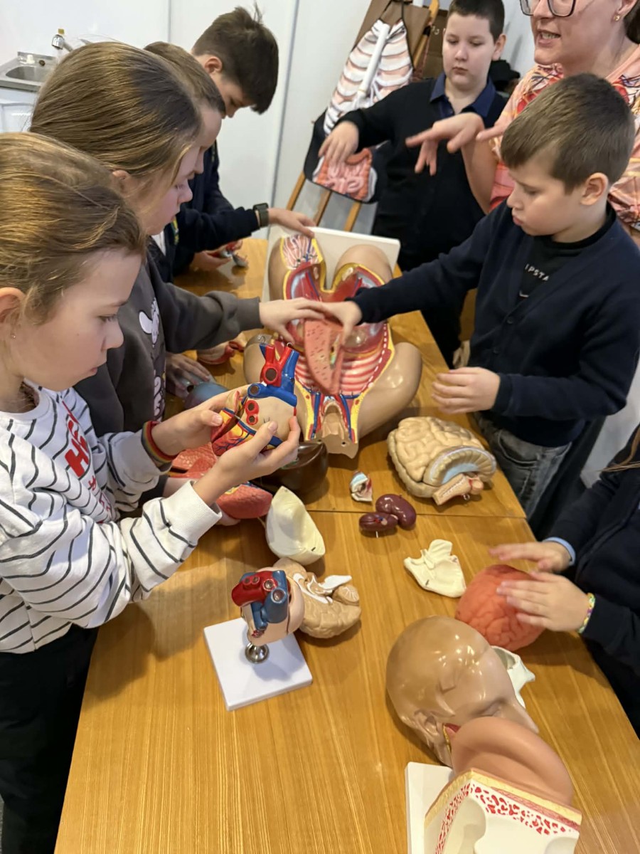 Edukacijos metu vaikai iš arti pamatė tarsi „atgyjančius“ žmogaus kūno organus 🫀, susipažino su jų veikla ir paskirtimi. Mokiniai praktiškai tyrinėjo anatominius modelius, patys bandė sudėti organų sistemas 🧩, lygino jų formas ir tarpusavio ryšius.