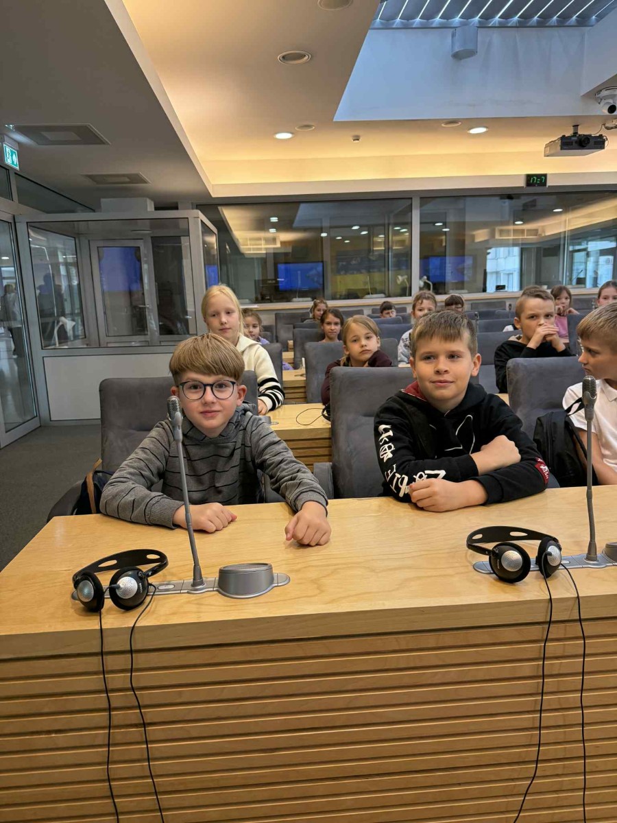 Rugsėjo 19 d. 3c klasės mokiniai 👧🧒 lankėsi LR Seime 🇱🇹. Tai buvo visuomeninio ugdymo pamokų 📚 dalis, kai teoriją pakeitė praktika 🔎 – vaikai sužinojo, kas yra Seimas 🏛️, kokias funkcijas jis atlieka ⚖️ ir kaip priimami sprendimai 🗳️. Ekskursijos metu 🚶‍♂️🚶‍♀️ jie apsilankė įvairiose konferencijų salėse 💼, apžiūrėjo, kur vyksta diskusijos 💬, ir net turėjo galimybę „pasimatuoti“ Seimo nario kėdę 🪑. Kelionė padėjo suprasti 🌍, kad Seimas – tai vieta, kur priimami įstatymai 📜 ir sprendžiami svarbūs valstybės klausimai 🕊️.
