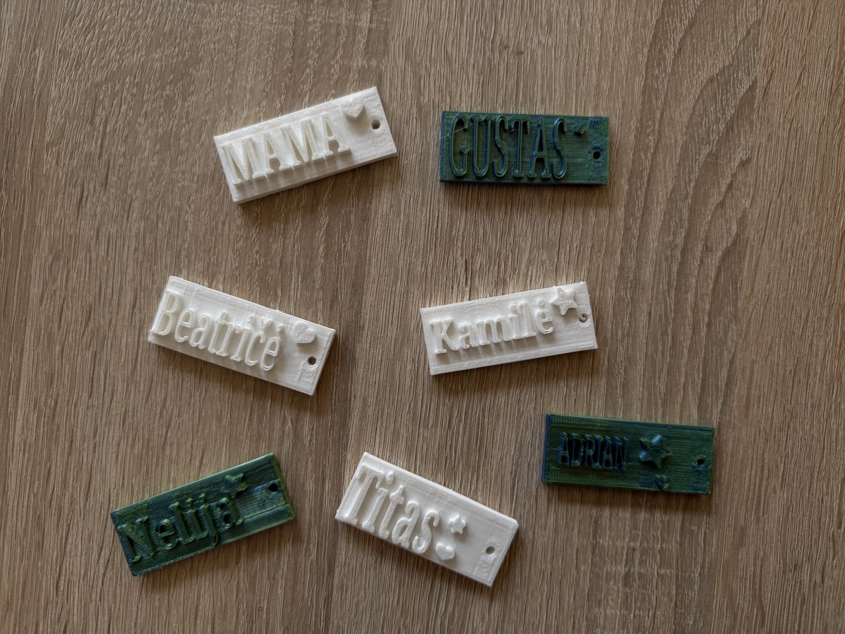 Naudodami „Tinkercad“ programą vaikai patys kūrė unikalius raktų pakabukų dizainus – nuo inicialų iki įvairių simbolių ir formų. Vėliau jų kūriniai virto realybe: pakabukai buvo atspausdinti 3D spausdintuvu! 🔑🤍