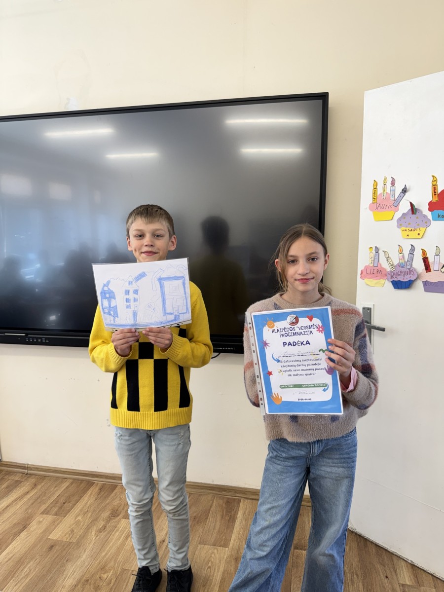 4a klasės mokinė Juliana D., 4a klasės mokinys Vytenis S. ir 4b klasės mokinė Lėja Ž. dalyvavo tarptautinėje virtualioje mokinių kūrybinių darbų parodoje „Nupiešk savo matomą pasaulį tik mėlyna spalva“, skirtoje pasaulinei autizmo dienai paminėti.