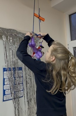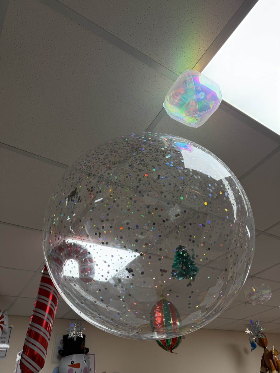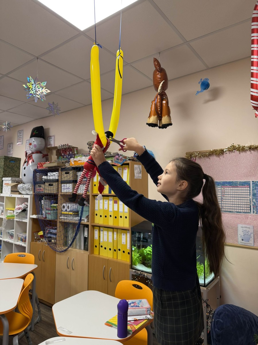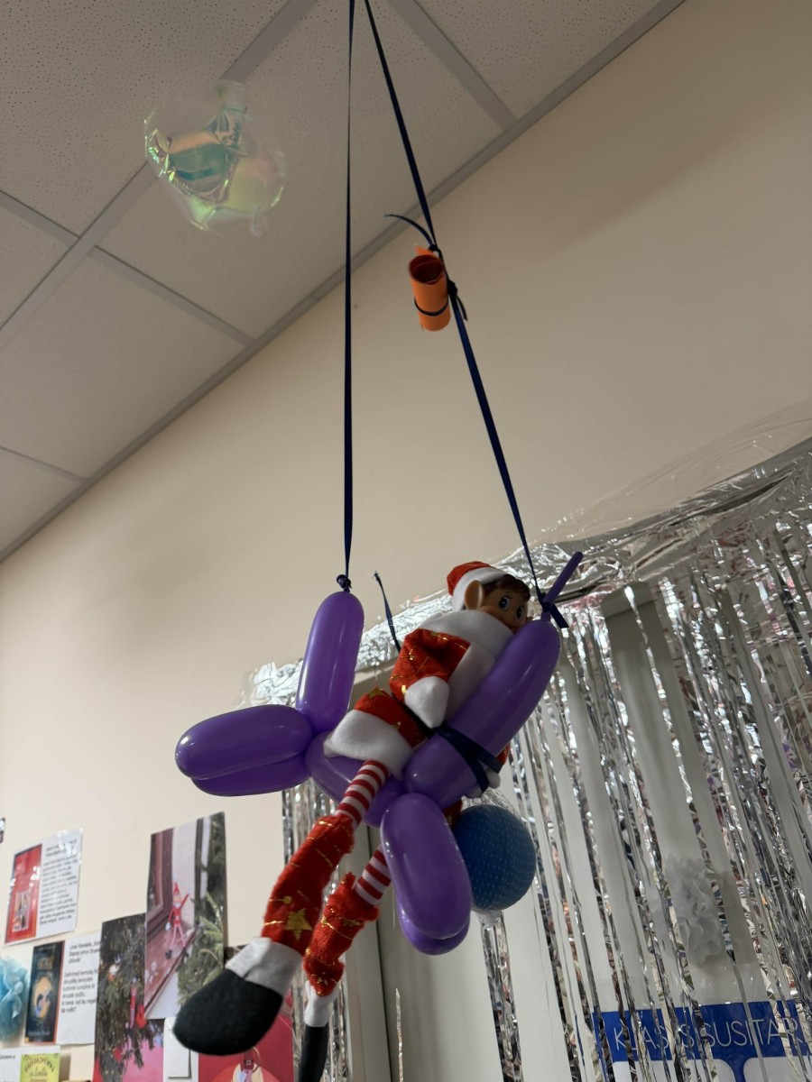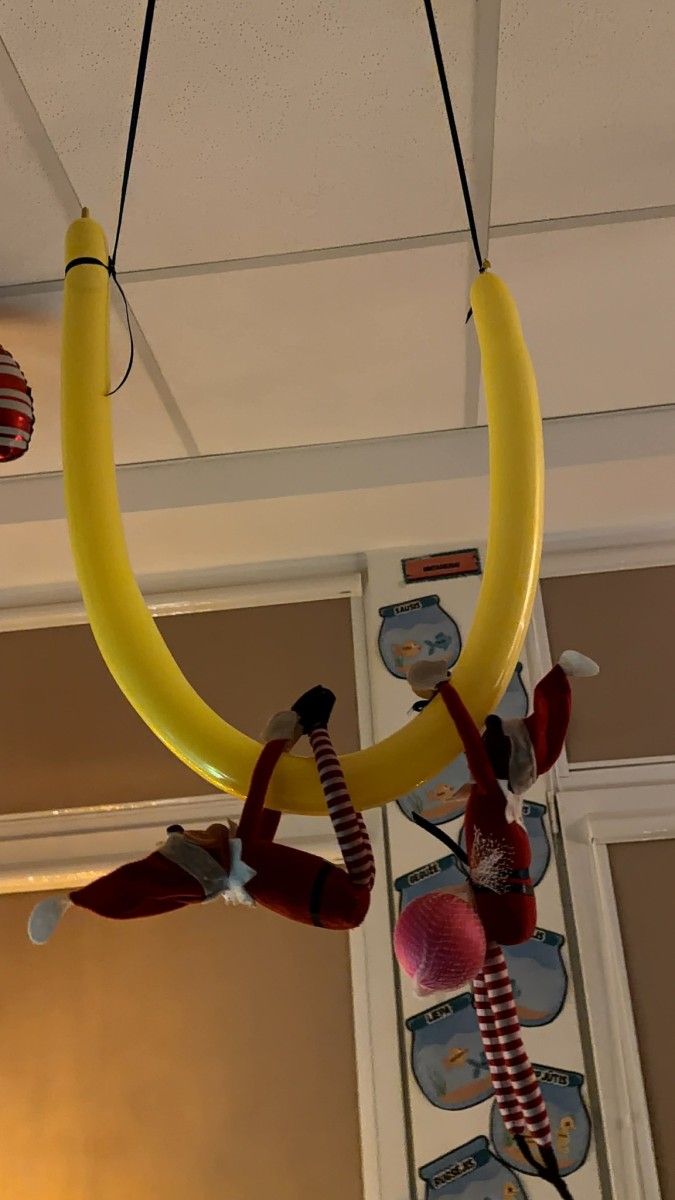 Ryte atėję radome per naktį pripūstą patį didžiausią disko balioną mokykloje! 💥🎈 Elfus įsiraizgiusius kabančiuose balionuose – atrodė, lyg būtų šokę ore visą naktį! 💃🕺