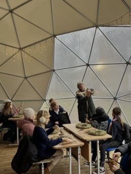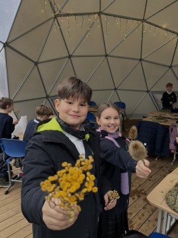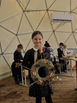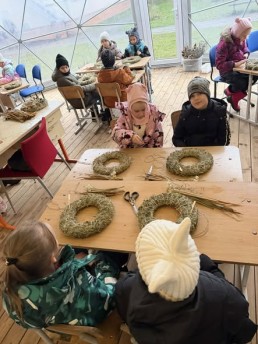 Gaminome kalėdinius vainikus iš ekologiškų, gamtos dovanotų medžiagų – šieno, smilgų, džiovintų gėlių, obuolių. Vaikai mokėsi pastebėti grožį paprastume, kalbėjosi apie tvarumą ir pagarbą gamtai 🌿.