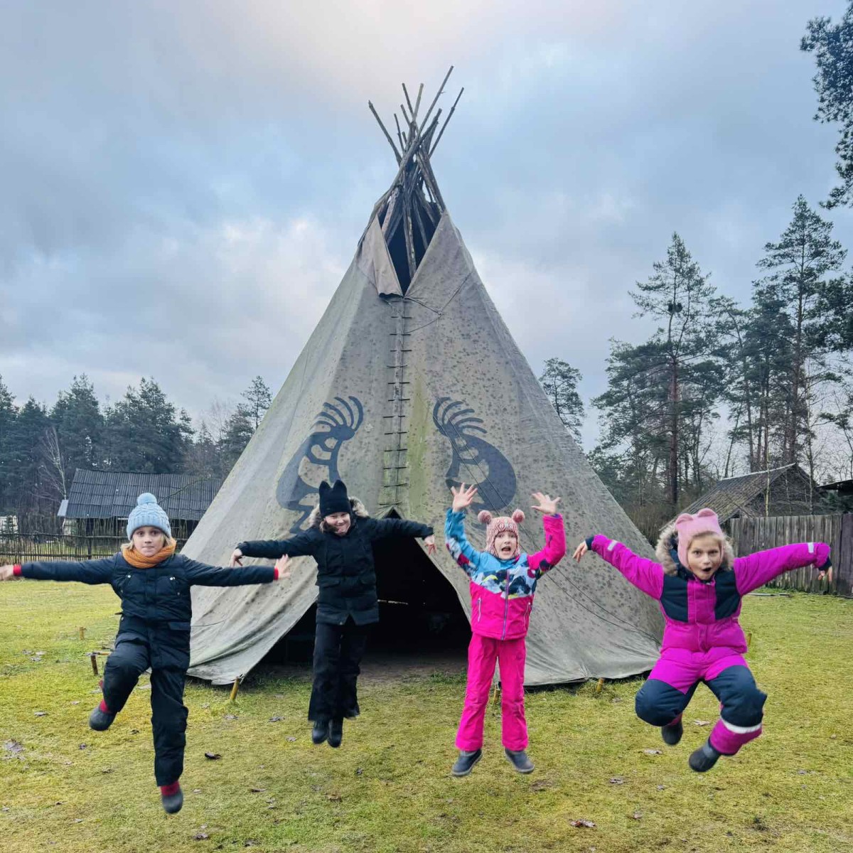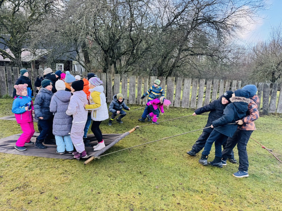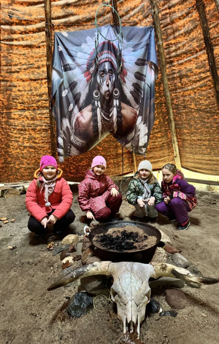 Vaikai taip pat aktyviai ir linksmai pramogavo gamtoje, žaidė komandinius žaidimus, laipiojo karstynėse, kaip tikri indėnai šoko lietaus šokį.
