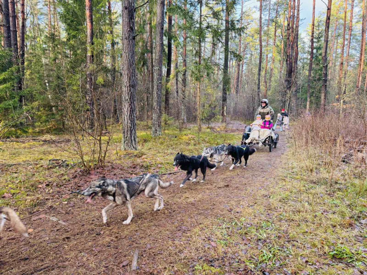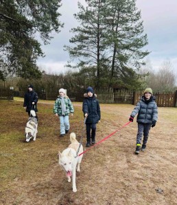 Gruodžio 9 d. 3b klasės mokiniai vyko į Neries regioniniame parke esantį, pušyno apgaubtą Žalgirio kaimelį, kurio trobos iki šiol kūrenamos krosnimis, o vanduo semiamas iš šulinių. Stebuklingame miške vaikų laukė staigmena: pakinkyti Sibiro haskiai, įspūdingos išvaizdos ir charakterio šunys. Vaikai mokėsi, kaip tinkamai elgtis su gyvūnais, kaip su jais bendrauti. Pažintį su haskiais vainikavo nepakartojamai smagus pasivažinėjimas šunų kinkiniu.
