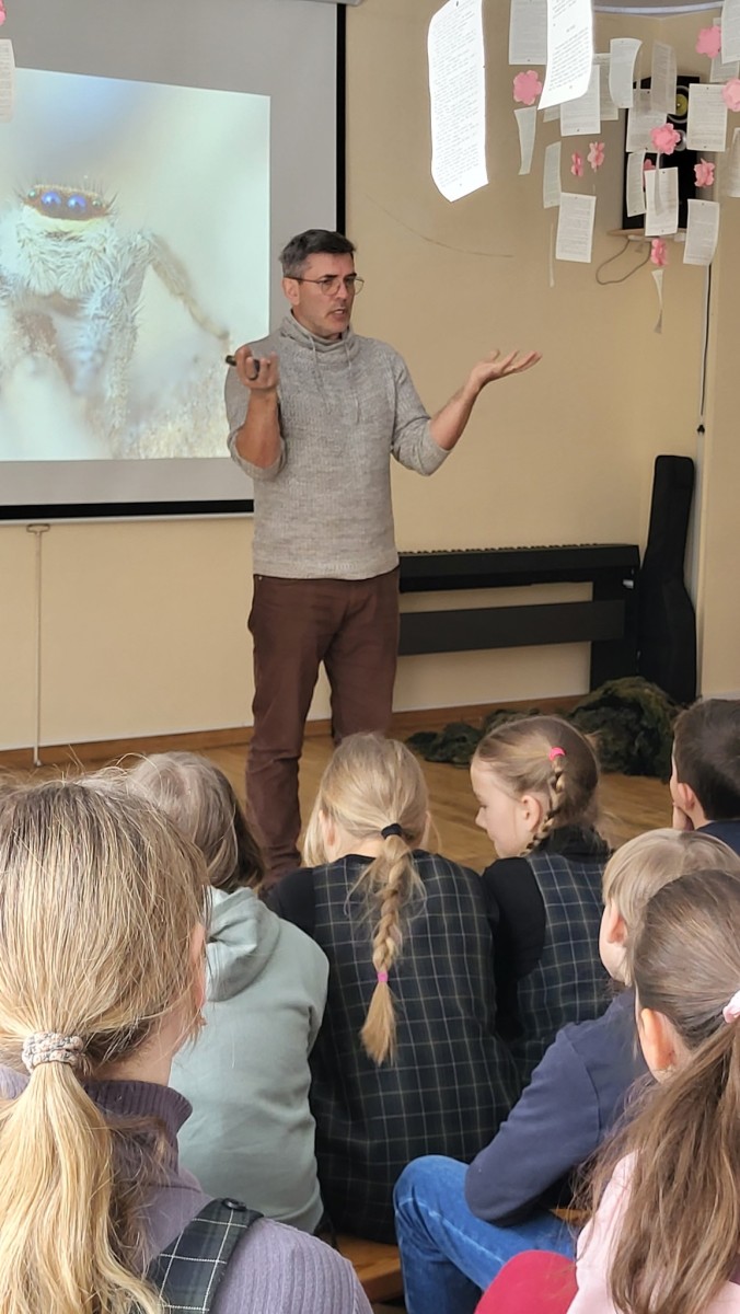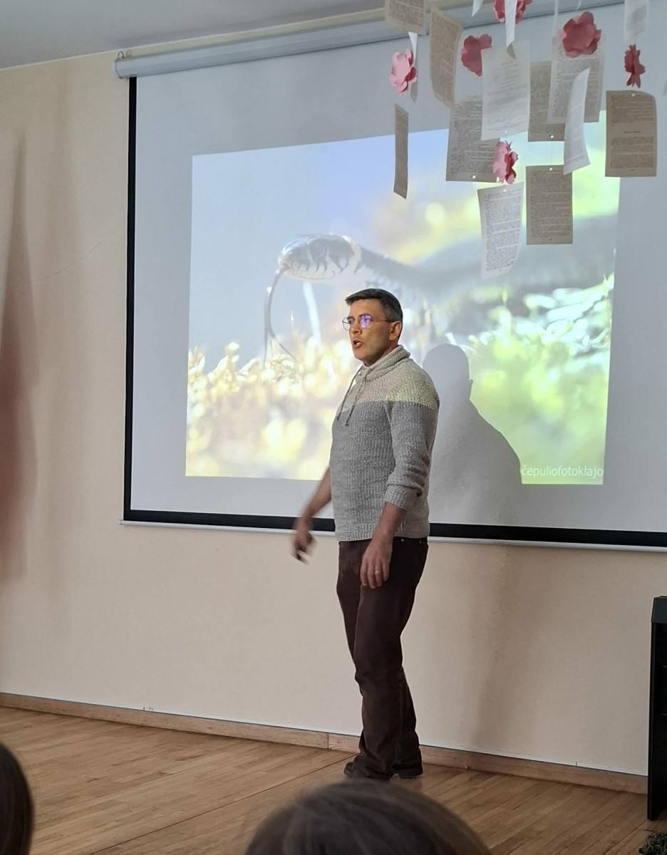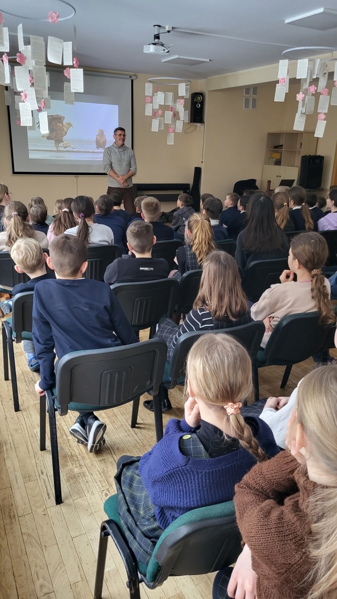 Gamtininkas, fotografas, laidų vedėjas ir knygų autorius. Kas? Visiems puikiai pažįstamas Marius Čepulis! Ketvirtokams kartu su mokytojomis Jurga G., Jurga S. ir Livija neįtikėtinai pasisekė, nes dalyvavo susitikime su Mariumi Čepuliu bei klausėsi šmaikščių ir įspūdingų jo pasakojimų apie gyvūnus, matė nuostabias paties M. Čepulio darytas nuotraukas. Autorius ne tik myli gamtą, bet ir vaikus skatina domėtis ja, pažinti, vertinti bei saugoti. Dėkojame gamtininkui už neišdildomus įspūdžius 🤩