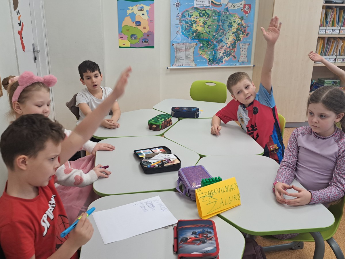 Pamokos šiandien virto prasmingomis patirtimis ir kūrybinėmis veiklomis 🎨📚 Vaikai klausėsi Vilniaus miesto įkūrimo legendos 🐺🔥, kuri leido nusikelti į senus laikus ir geriau pažinti savo miesto istoriją. Taip pat aktyviai dalyvavo viktorinose 🧠🙋‍♀️🙋‍♂️, kuriose pasitikrino žinias apie Vilnių, jo simbolius ir svarbiausias vietas 🏰🕍