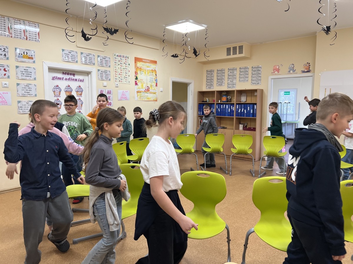 Lapkričio 21-ąją šventėme MOKYKLOS VARDYNAS 🎉🎈. Mokiniai keliavo po įvairias mokyklos erdves 🚶♀️🚶♂️🏫, kur juos pasitiko mokytojai su smagiomis žaidybinėmis veiklomis 🎲✨🤩. Tai buvo puiki proga geriau susipažinti su mokytojais 👩🏫👨🏫 ir patirti naujų įspūdžių 🌟💫.