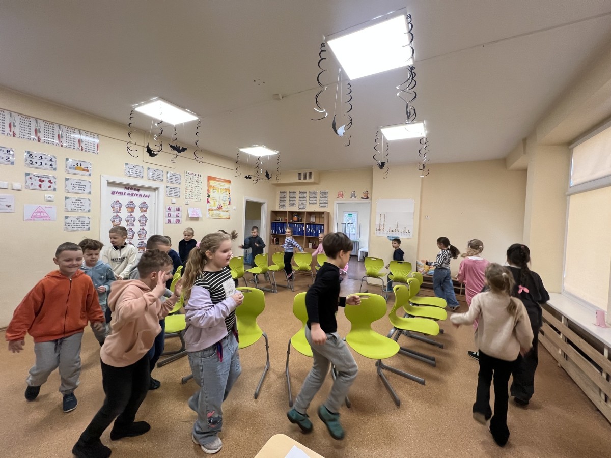 Per pertraukas skambėjo muzika 🎵🎶, vaikai šoko, žaidė ir linksmai leido laiką 💃🕺😄.