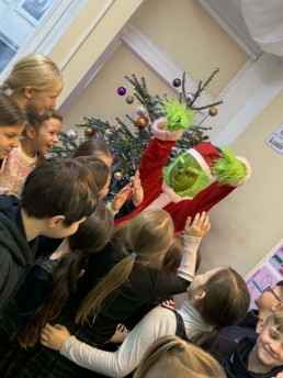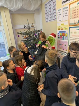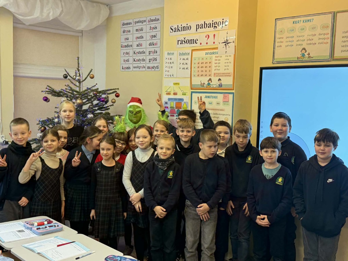 Šiandien 3C ir 4B klasėse apsilankė… pats Grinčas! 😱 Atrodė, kad jis atėjo pavogti Kalėdų, bet vietoj to – juokėsi, maivėsi, fotografavosi ir džiugino vaikus.