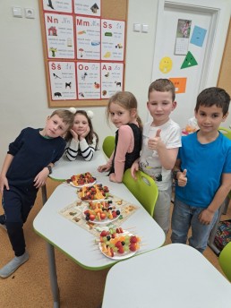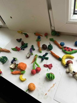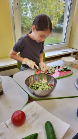 gamino sveikus patiekalus, kūrė „Sveikos lėkštės“ paveikslus, lipdė sveikus produktus iš plastilino bei dalyvavo edukacijoje su „Vilnius sveikiau“ atstove. Emocijų savaitę