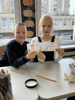panašios vertybės, kurios svarbios šiais neramiais laikais. Vienybė tai bendrumas, palaikymas, vieningumas… Šiemet mokiniai klausėsi rašytojo ir iliustratoriaus Bárður Oskarsson paveikslėlių knygos „Šuo, katė ir pelė“ minčių, kurios įkvėpė diskutuoti vienybės tema, piešti , kurti komiksus, aplikuoti veikėjus, kurti , žaisti įvairius žaidimus, organizuoti knygų parodas…