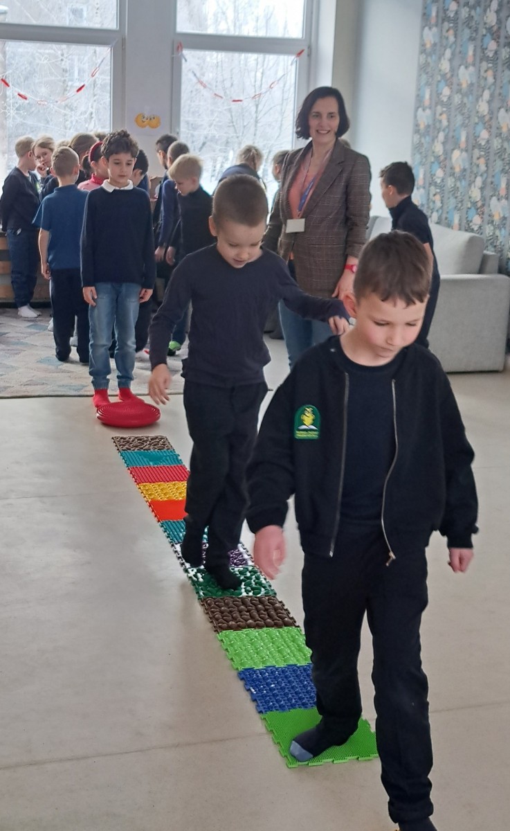 Užsiėmimo „Linksmosios pėdutės“ metu pirmokai daug judėjo, atliko įvairias užduotis, mokėsi taisyklingos laikysenos bei suprato, kodėl judėjimas yra toks svarbus mūsų kūnui. 🦶💪