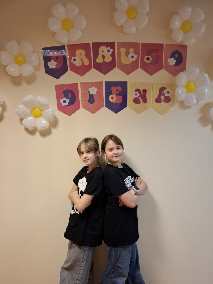 Mokiniai taip pat galėjo įsiamžinti prie teminės nuotraukų sienelės 📸✨. Čia netrūko kūrybingų pozų ir draugiškų apsikabinimų. Dienai žaismingumo suteikė iniciatyva apsirengti panašiai su savo draugu ar draugų grupe 👯👯♂️. Mokykloje mirgėjo derantys drabužiai, identiškos detalės😊.