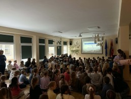 Pertraukų metu aktų salėje skambėjo linksma muzika 🎶, mokiniai buvo kviečiami šokti kartu su savo draugais 💃🕺, vyko tikra draugų diskoteka, sukūrusi puikią nuotaiką visai bendruomenei. Vienas iš gražiausių šventės akcentų – visa mokykla kartu sudainavo bendrą draugystės dainą 🎤💛.